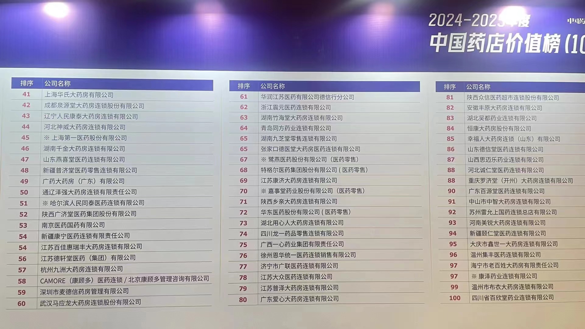 中国药店价值榜100强